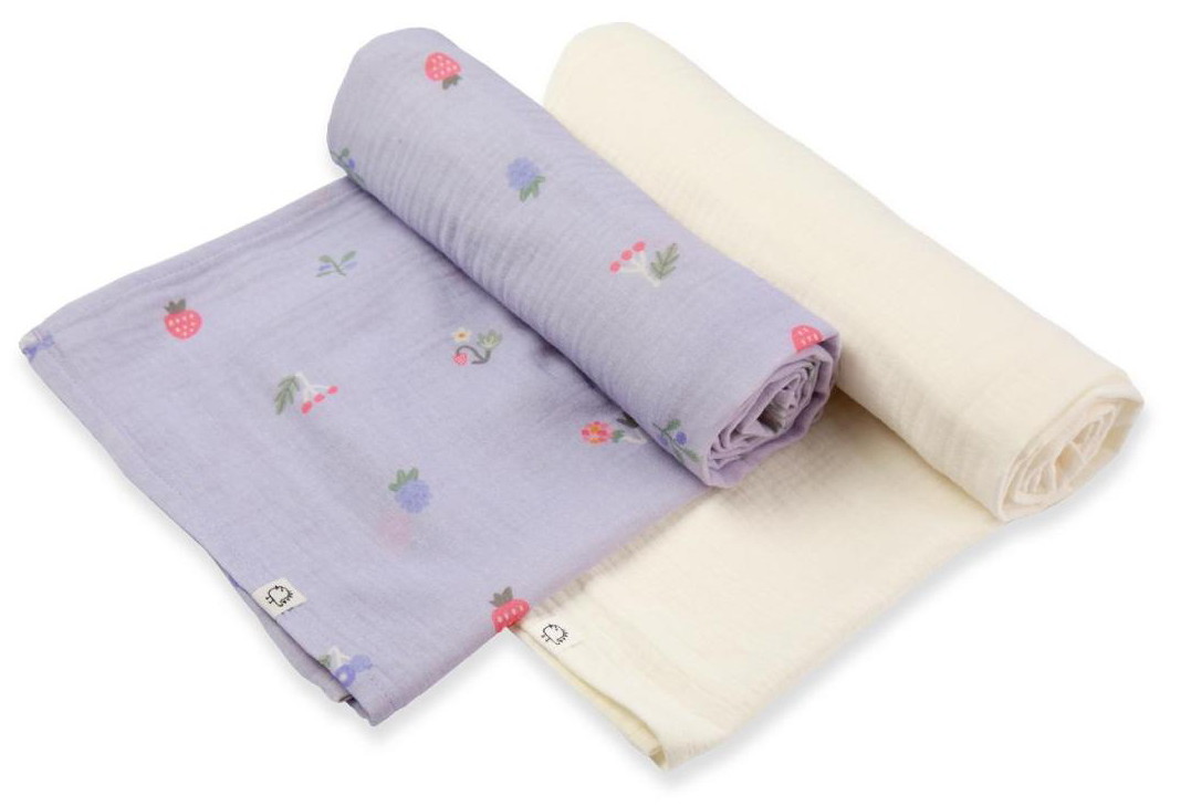 Пелёнки муслиновые Buba Kids, 2 шт, 75х115 см BKMUSSW37 Таежные ягоды/сливочный
