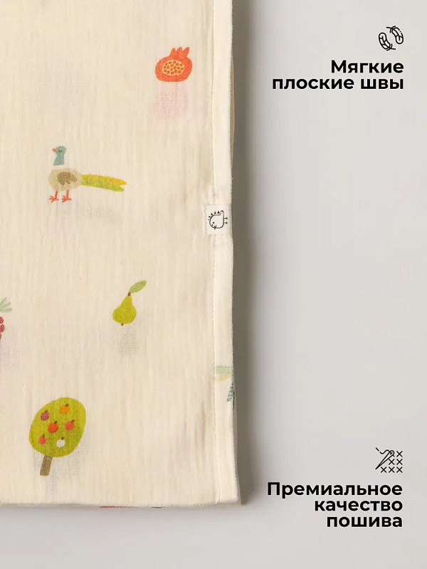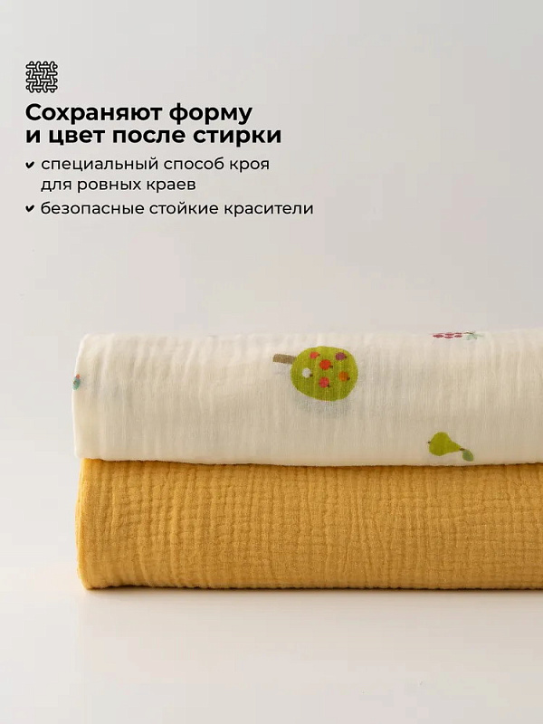 Несмотря на свою воздушность, муслин прочный и долговечный, с каждой стиркой становится только мягче. Пелёнки изготовлены с плоскими деликатными швами и с использованием безопасных натуральных красителей.