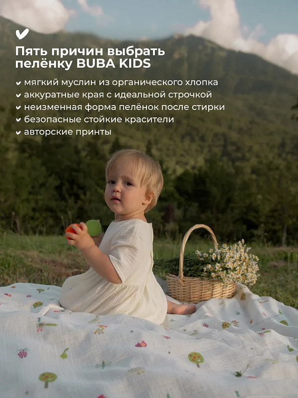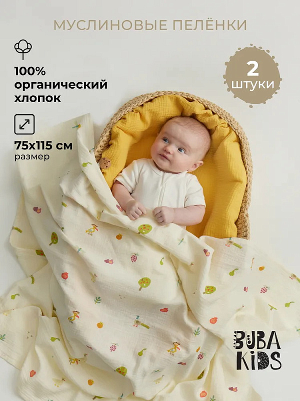Пелёнки муслиновые Buba Kids, 2 шт, 75х115 см BKMUSSW59 Сады Кавказа/горчицаНет оценокХарактеристики