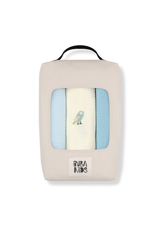 Пелёнки муслиновые Buba Kids, 3 шт, 75х75 см BKMUSSW10 Таёжная ночь/ нежно-голубой/ синяя пастель