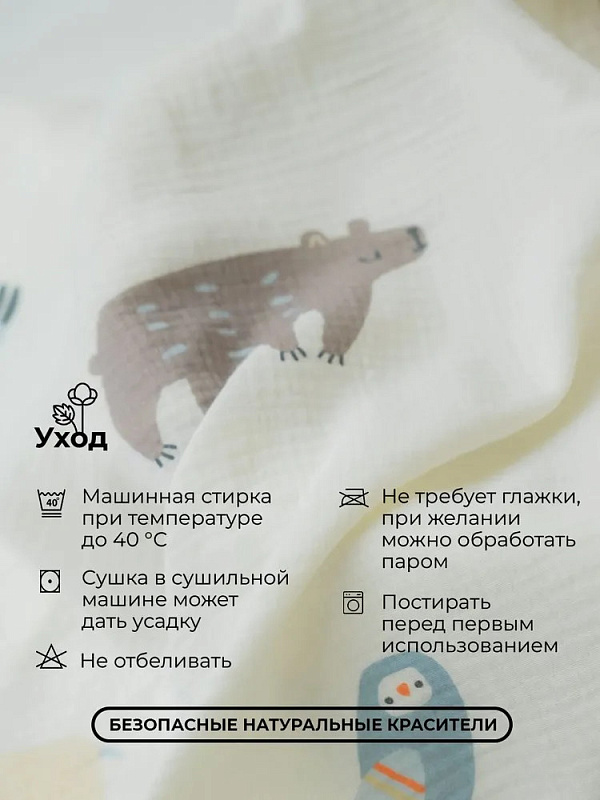 Несмотря на свою воздушность, муслин прочный и долговечный, с каждой стиркой становится только мягче. Пелёнки изготовлены с плоскими деликатными швами и с использованием безопасных натуральных красителей.