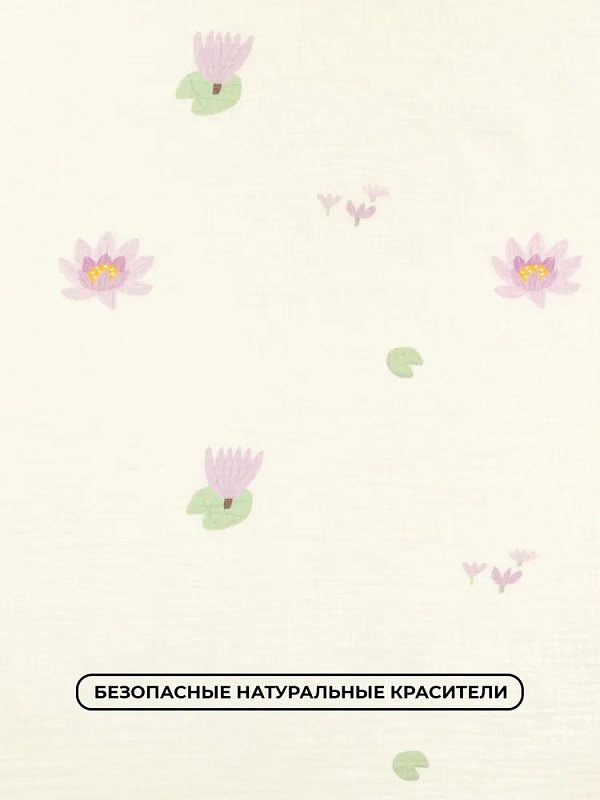 Пелёнки муслиновые Buba Kids, 3 шт, 75х75 см BKMUSSW23IV Кувшинка лиловая на молочном/ сирень/ ирисНет оценокХарактеристики