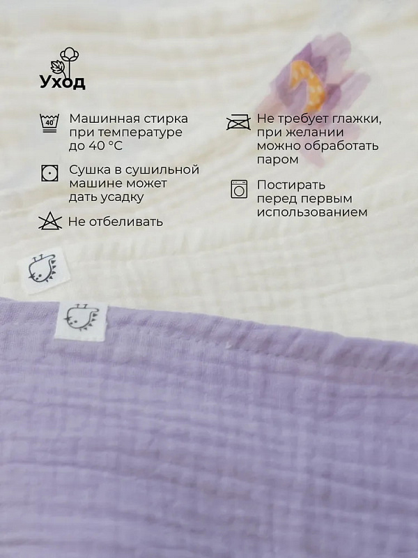 Несмотря на свою воздушность, муслин прочный и долговечный, с каждой стиркой становится только мягче. Пелёнки изготовлены с плоскими деликатными швами и с использованием безопасных натуральных красителей.