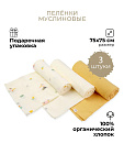 Пелёнки муслиновые Buba Kids, 3 шт, 75х75 см BKMUSSW40 Утка-мандаринка/ горчица/ сливочный