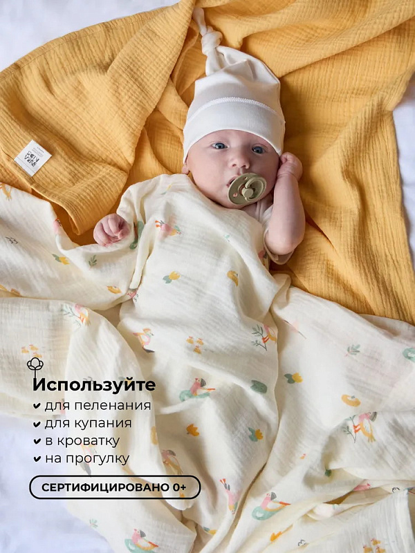 Пелёнки муслиновые Buba Kids, 3 шт, 75х75 см BKMUSSW40 Утка-мандаринка/ горчица/ сливочныйНет оценокХарактеристики