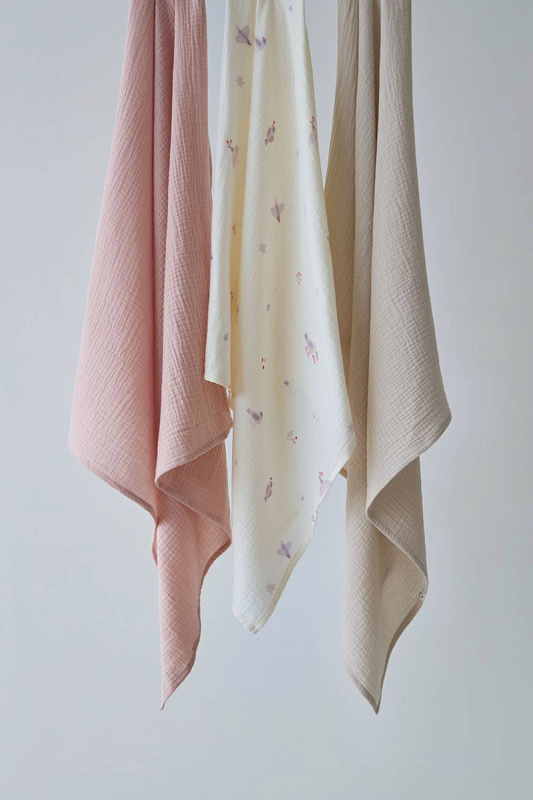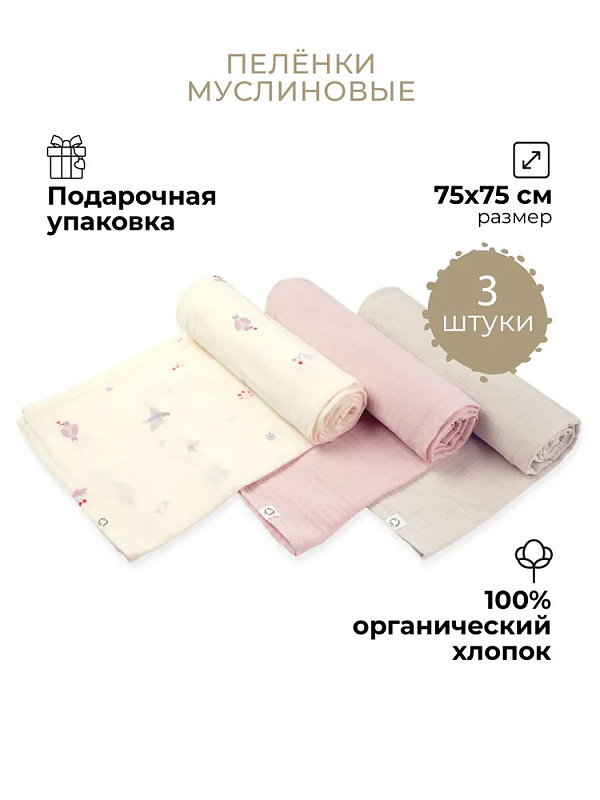 Пелёнки муслиновые Buba Kids, 3 шт, 75х75 см BKMUSSW43 Песня Севера/ пудра/ миндаль