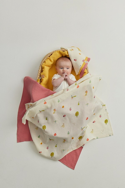 Пелёнки муслиновые Buba Kids, 3 шт, 75х75 см BKMUSSW49 Сады Кавказа/ горчица/ малина со сливками