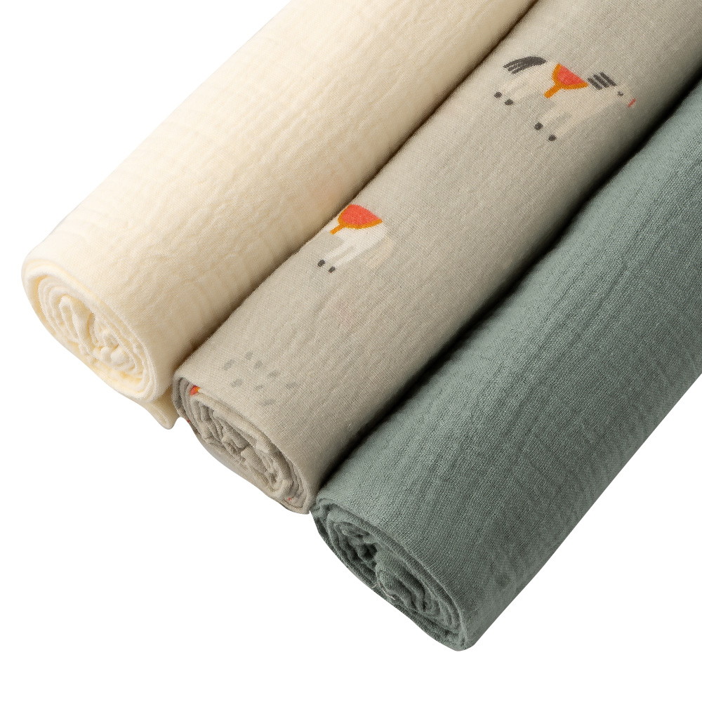 Пелёнки муслиновые Buba Kids, 3 шт, 75х75 см BKMUSSW50 Кабардинские лошадки/ полынь/ сливочный