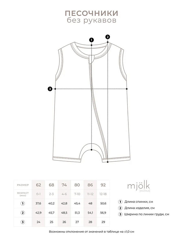Песочник Mjölk [мьёльк] Sleep and Play – это комбинезон на молнии без рукавов и штанинами, выполненный из плотного и очень мягкого трикотажа.