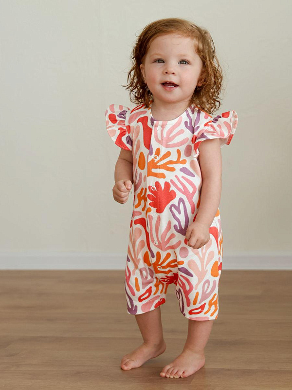 Стильный песочник для девочки с очаровательным принтом “Разноцветные узоры” - воплощение комфорта и нежности для вашего ребенка.