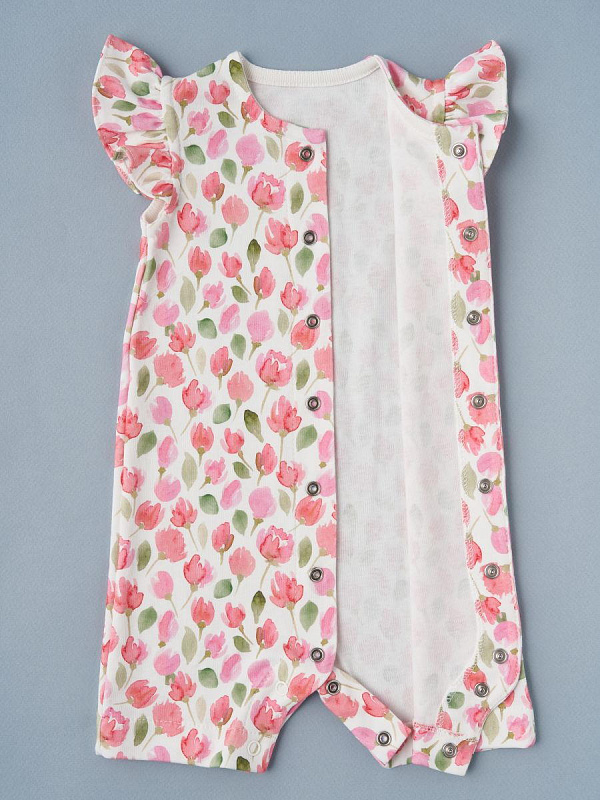 Песочник для девочки выполнен из мягкого трикотажа. Кнопки расположены по центру, сверху донизу, что заметно упростит переодевание. Украшают модель рукава-крылышки.