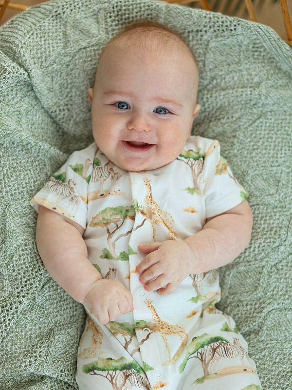 Песочники для новорожденных от бренда Little Star – прекрасное дополнение для базового гардероба Вашего малыша. Нательный комбинезон выполнен из 100% хлопка, премиального качества интерлок, пенье – гипоаллергенный, очень мягкий и приятный на ощупь. Универсальный песочник с коротким рукавом для мальчика на кнопках с невероятного нежным и стильным принтом имеет классический приталенный крой. Удобная модель позволит легко и быстро переодевать ребенка. Кнопки расположены посередине. Мы заботливо подошли к грудничкам, для них размеры 56 и 62 со швами наружу. Ткань, используемая в производстве одежды для новорожденных, нежная, приятная к телу – защищает от перегревов и переохлаждения в осенний, зимний, весенний и летний сезон. Хлопок износостойкий, дышащий и устойчив к множеству стирок без потери цвета, при условии правильного ухода за изделием. С наилучшими пожеланиями Вам и Вашему маленькому Чуду!