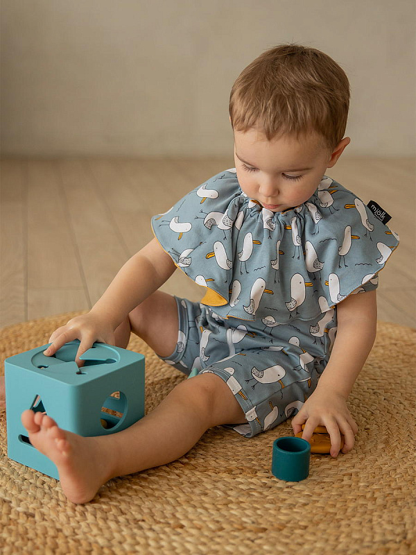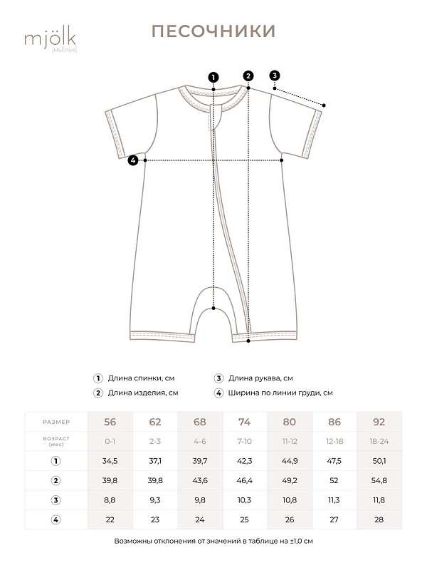 Песочник Mjölk [мьёльк] Sleep and Play – это комбинезон на молнии с короткими рукавами и штанинами, выполненный из плотного и очень мягкого трикотажа.