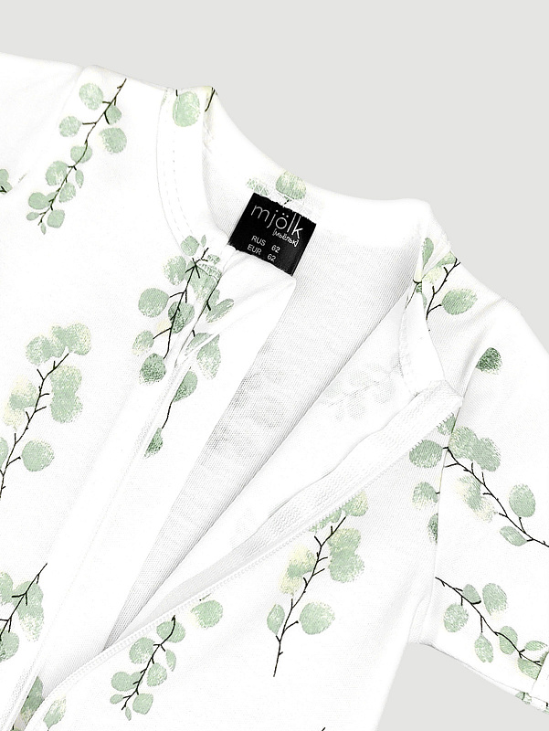 Песочник Mjölk [мьёльк] Sleep and Play Эвкалипт – это комбинезон на молнии с короткими рукавами и штанинами, выполненный из плотного и очень мягкого трикотажа.