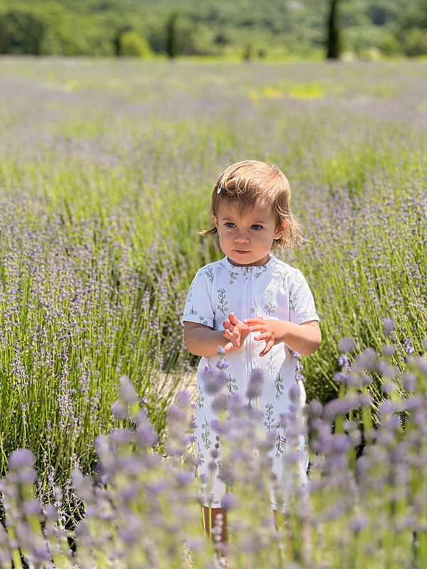 Летний комбинезон изготовлен из трикотажного хлопка под названием интерлок. Интерлок – это плотный трикотаж двойного плетения хлопчатобумажных нитей.