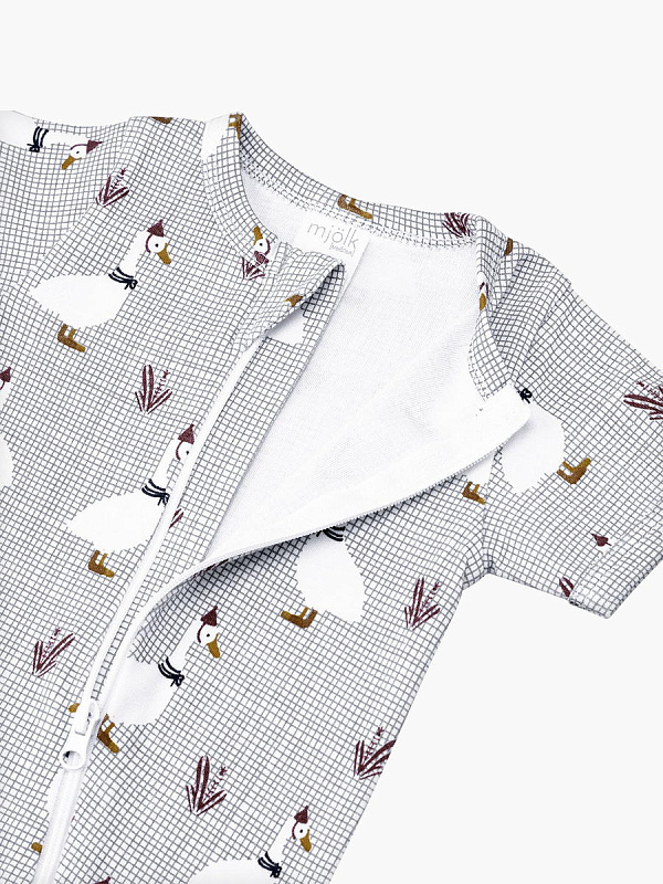 Песочник Mjölk [мьёльк] Sleep and Play – это комбинезон на молнии с короткими рукавами и штанинами, выполненный из плотного и очень мягкого трикотажа.