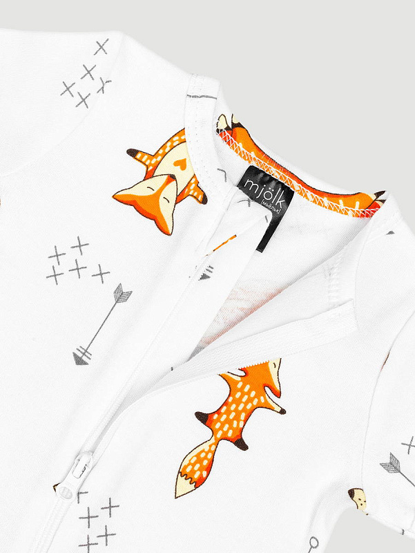 Песочник Mjölk [мьёльк] Sleep and Play Лисички – это комбинезон на молнии с короткими рукавами и штанинами, выполненный из плотного и очень мягкого трикотажа.