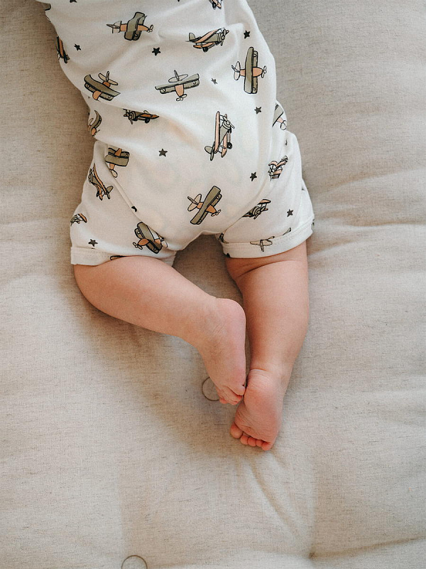 Летний комбинезон изготовлен из трикотажного хлопка под названием интерлок. Интерлок – это плотный трикотаж двойного плетения хлопчатобумажных нитей.