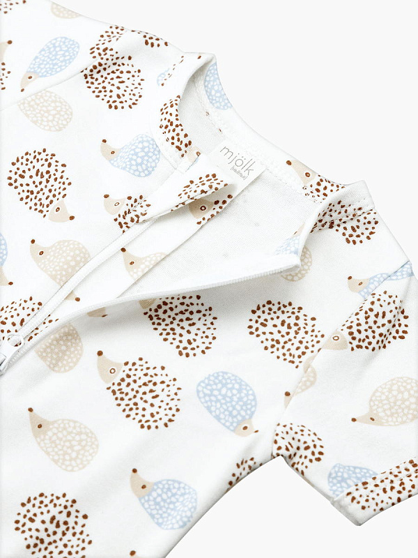Песочник Mjölk [мьёльк] Sleep and Play Ёжики – это комбинезон на молнии с короткими рукавами и штанинами, выполненный из плотного и очень мягкого трикотажа.
