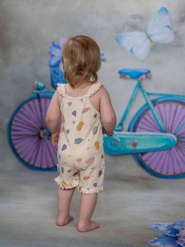 Комбинезон-песочник подходит для летних прогулок, а также для повседневной носки. Модель застегивается на пуговицы спереди, что позволит быстро снять и одеть песочник.