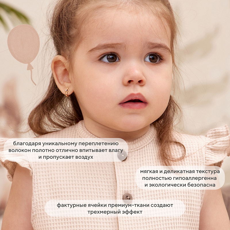 Эксклюзивная коллекция WAFFY буквально соткана из заботы и наполнена бесконечной любовью к нашим маленьким клиентам. Деликатные спокойные расцветки, натуральные ткани премиум-класса (фактурный вафельный трикотаж), качественная фурнитура, комфортное лекало, лаконичное исполнение, сочетающиеся между собой изделия - визитная карточка нашей одежды для малышей.