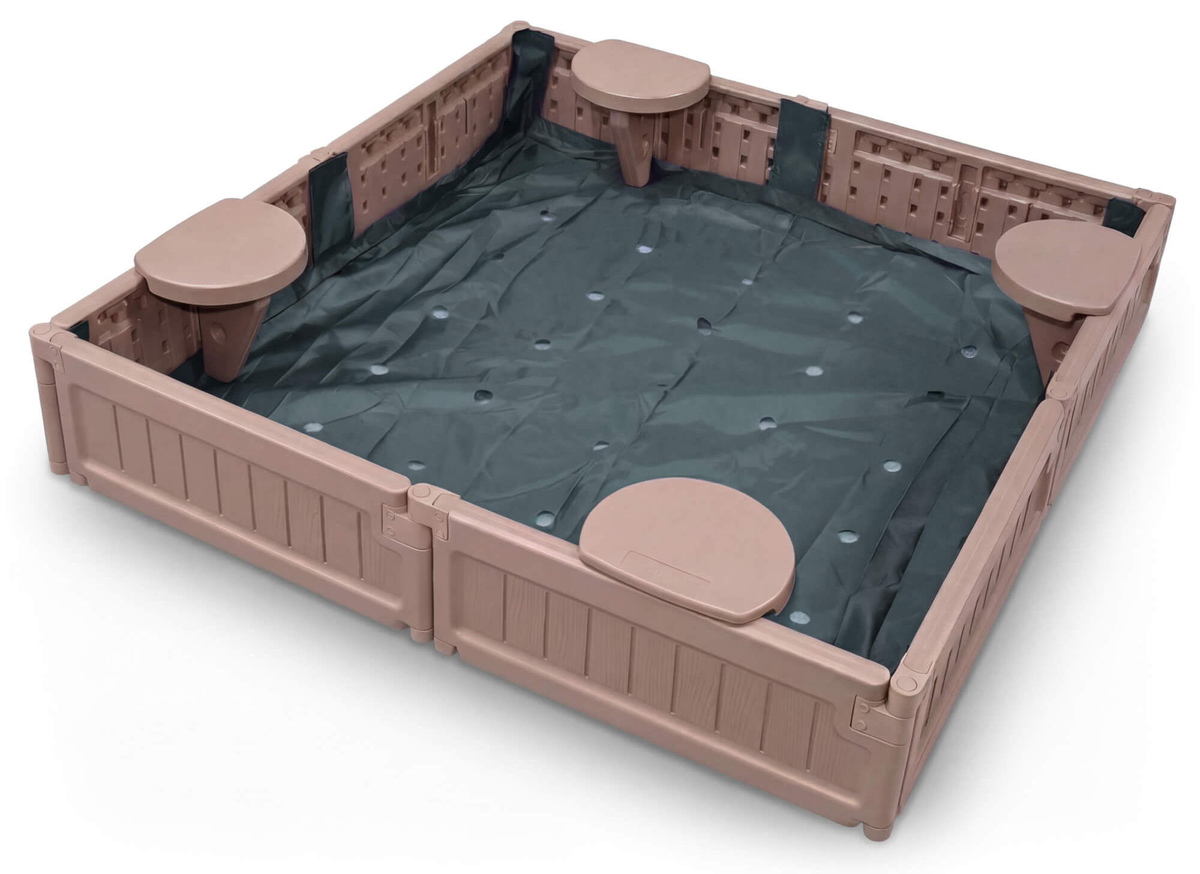 Детская квадратная песочница с защитным чехлом UNIX Kids для улицы и дома – это увлекательное и функциональное игровое пространство, идеально подходящее для активного отдыха детей дошкольного возраста. Она выполнена в форме квадрата 123 х 123 см и оснащена 4-мя удобными сиденьями для комфортного размещения детей во время игры. Каждое сиденье рассчитано на нагрузку до 25 кг. Максимальная вместительность составляет до 270 кг песка (около 180 литров), что позволяет создать обширную зону для творчества и развлечений.