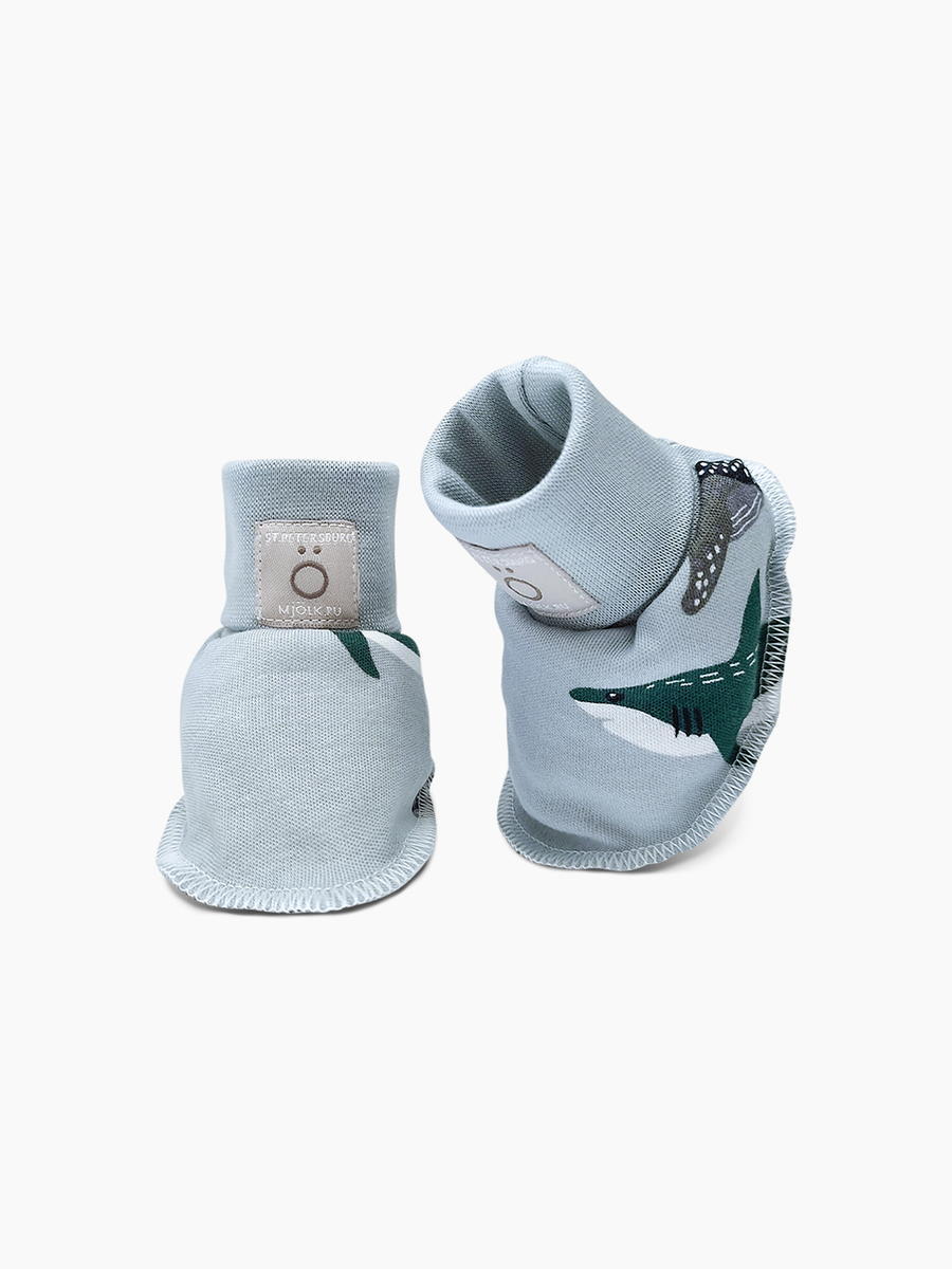 Пинетки Mjölk [мьёльк] пригодятся ребёнку с самого рождения и примерно до 3х месяцев. Ботиночки полностью мягкие, выполнены из нежного трикотажа. Широкая эластичная резинка бережно облегает ножку, не оставляет следов и надёжно удерживает пинетки даже на самом активном малыше. Просторная модель носочка не сковывает движения пальчиков, а натуральный хлопок безопасен для самых маленьких.