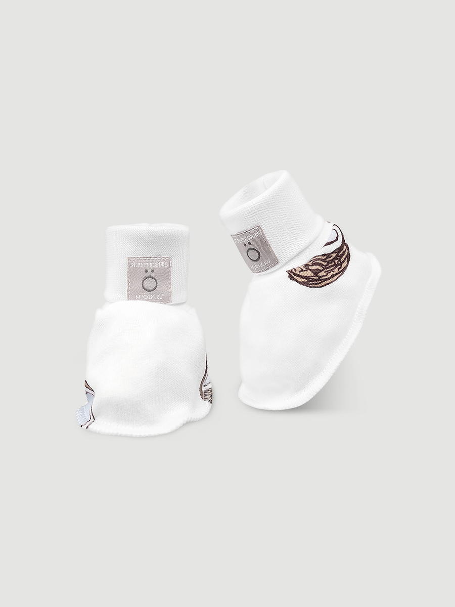 Пинетки Mjölk подарят крохе не только тепло, но и милый образ для дома, прогулок и фотосессий. Изделия упакованы в нарядный фатиновый мешочек и станут полезным подарком к появлению на свет крошки. Пинетки изготовлены из интерлока – плотного, лёгкого и приятного на ощупь трикотажа. Материал не вызывает аллергии, пропускает воздух, защищает от перегрева и охлаждения.