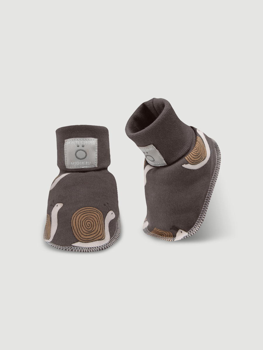 Пинетки Mjölk [мьёльк] пригодятся ребёнку с самого рождения и примерно до 3х месяцев. Ботиночки полностью мягкие, выполнены из нежного трикотажа. Широкая эластичная резинка бережно облегает ножку, не оставляет следов и надёжно удерживает пинетки даже на самом активном малыше. Просторная модель носочка не сковывает движения пальчиков, а натуральный хлопок безопасен для самых маленьких.