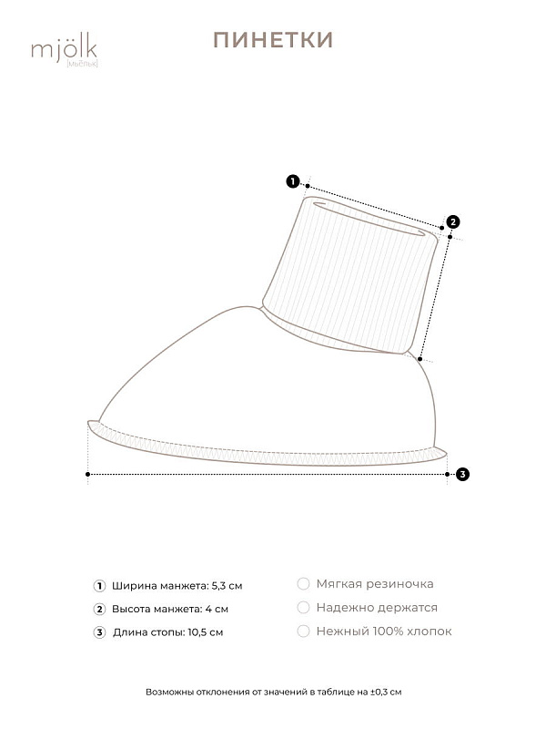 Пинетки Mjölk подарят крохе не только тепло, но и милый образ для дома, прогулок и фотосессий. Изделия упакованы в нарядный фатиновый мешочек и станут полезным подарком к появлению на свет крошки. Пинетки изготовлены из интерлока – плотного, лёгкого и приятного на ощупь трикотажа. Материал не вызывает аллергии, пропускает воздух, защищает от перегрева и охлаждения.