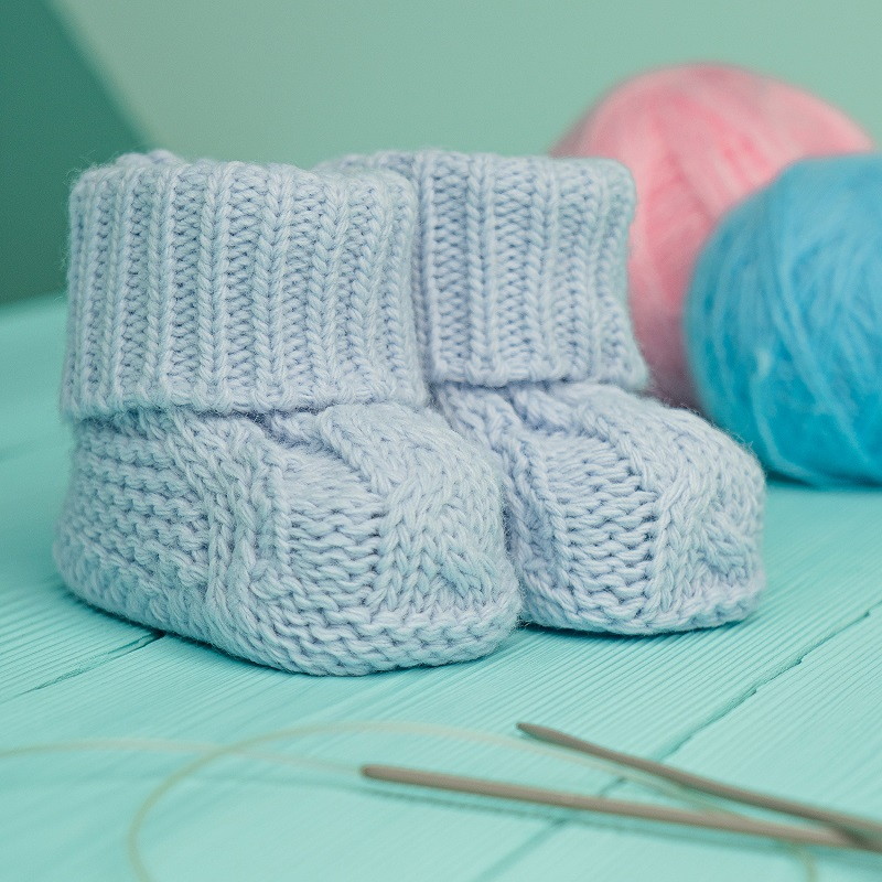 Детские вязаные пинетки будут находкой для мамы в любое время года. Вязка выглядит стильно и напоминает плотную фактурную ткань. Модель хорошо тянется, не давит на ножки, широкий отворот мягко обнимает ножку и добавляет мягкости. Пинетки красиво смотрятся и сохранят ножки в тепле.