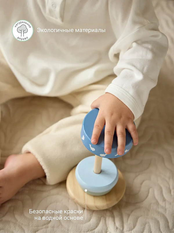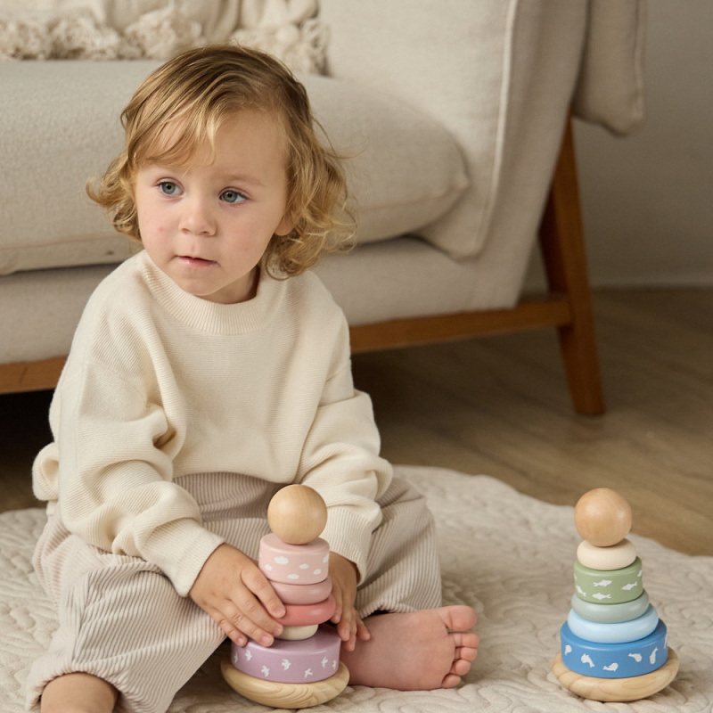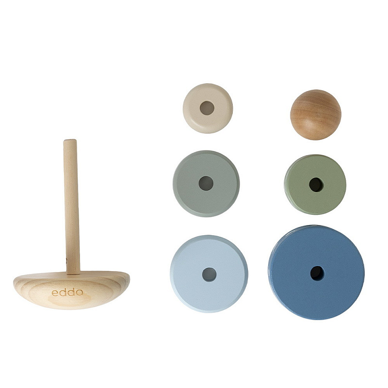 Деревянная пирамидка edda — это эстетика и лаконичный дизайн, сочетающий простые формы и спокойные цвета. Игрушка устойчива в статике, покачивается при небольшом наклоне и возвращается в исходное положение, поэтому малышу весело играть с ней снова и снова. Пирамидка в нежных оттенках помогает малышу развивать координацию, учиться сочетать цвета и органично дополняет интерьер. edda — это поэзия современного детства, где хороший вкус прививается с первых дней жизни.