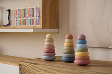 Пирамидка – одна из первых развивающих игрушек малыша. Она состоит из семи деталей с элементами pop-it, где каждый элемент — разного цвета и диаметра. Собирая большие и маленькие детали пирамидки, ребёнок научится различать формы и размеры предметов, познакомится с понятием «больше-меньше». Пирамидка развивает мелкую моторику, логическое мышление и координацию малыша. Мягкая цветовая палитра игрушки гармонично сочетается с интерьером детской.