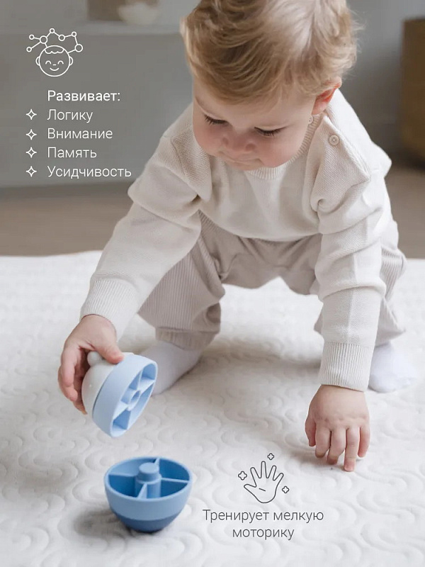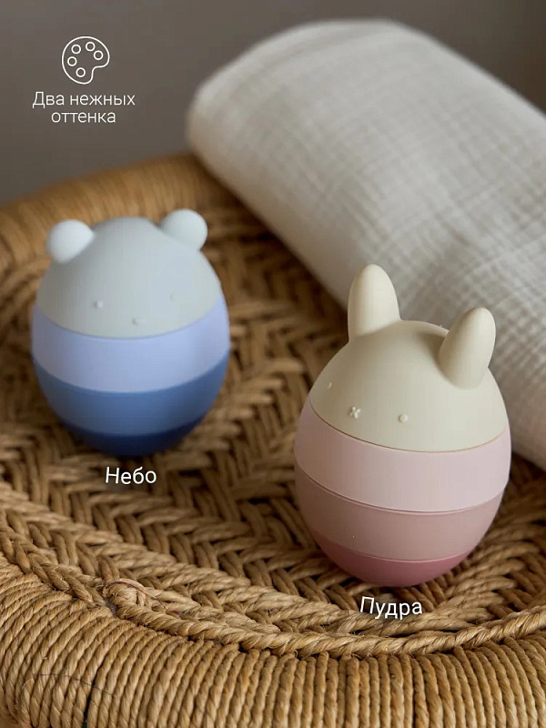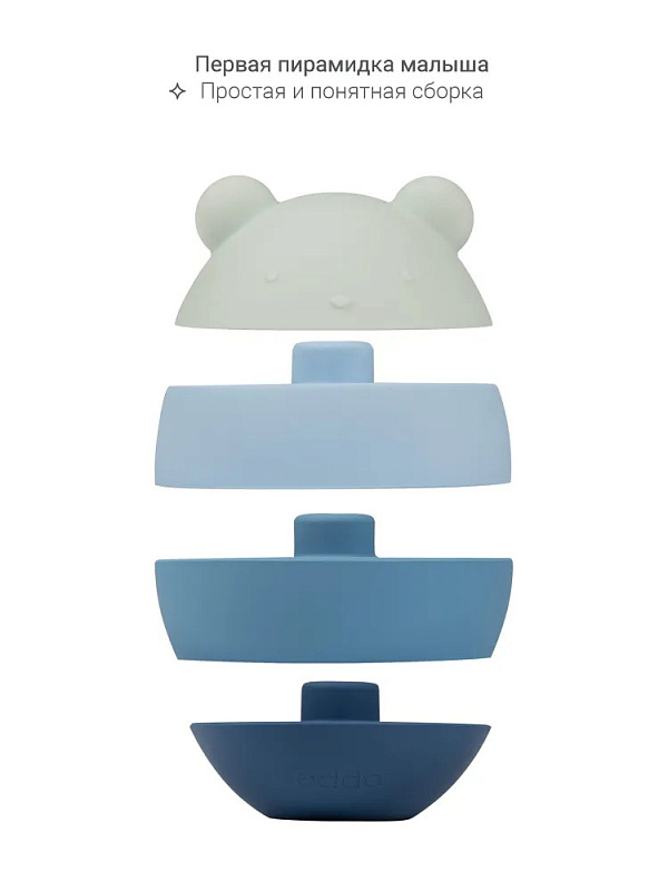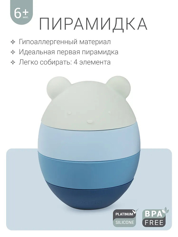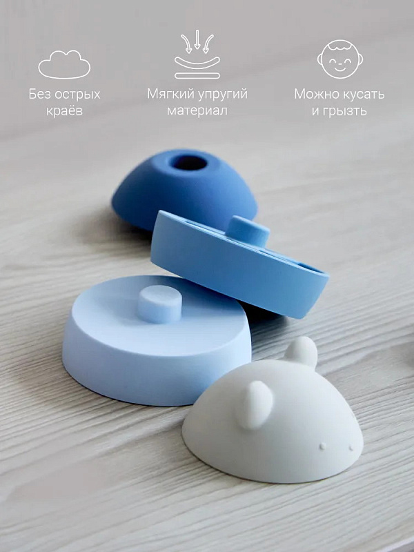 Пирамидка из гипоаллергенного силикона состоит из четырёх элементов разного размера, которые вместе образуют фигурку мишки. Подходит для малышей от полугода: сборка игрушки проста и понятна для самых маленьких. Игры с пирамидкой развивают логику, аналитическое мышление, внимание, память и усидчивость. Собирая детали в одну фигуру, малыш тренирует мелкую моторику. Все детали мягкие и без острых краёв, их можно брать в рот без вреда для дёсен. Пирамидка выполнена в нежных цветах, поэтому игрушка гармонично впишется в интерьер современной детской.