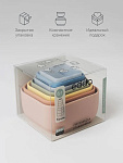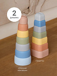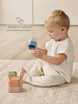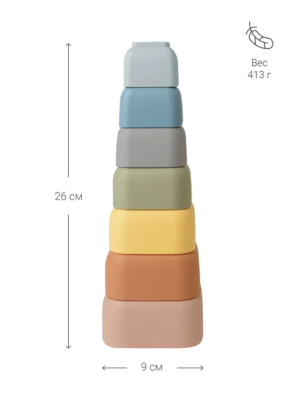 - Веселые игры, простота в уходе — в наборе есть стаканчики с дырочками: так играть с пирамидкой в воде или песке еще интереснее, например в дождик. Пирамидку легко промыть, стерилизовать или прокипятить.