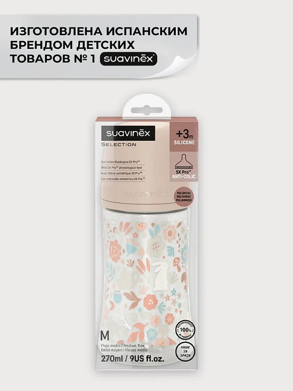 Пластиковая бутылочка Suavinex Wond для детского питания 270 мл 308748 LIBERTY PKНет оценокХарактеристики