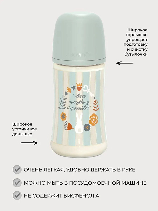 Пластиковая бутылочка Suavinex Wond для детского питания 270 мл 308751 TEXT GRНет оценокХарактеристики