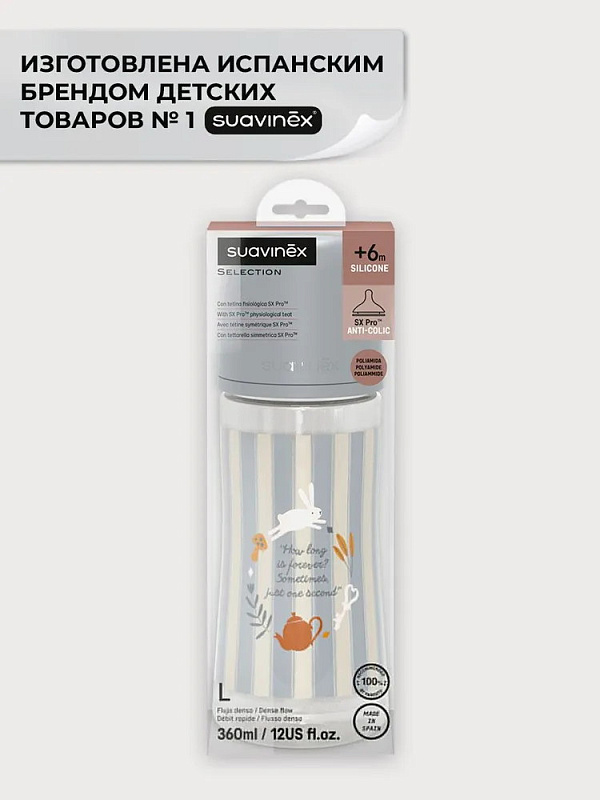 Пластиковая бутылочка Suavinex Wond для детского питания 360 мл 308757 TEXT BLНет оценокХарактеристики