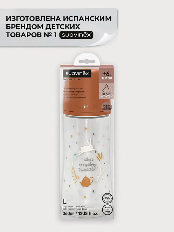 Пластиковая бутылочка Suavinex Wond для детского питания 360 мл 308758 TEXT BGНет оценокХарактеристики