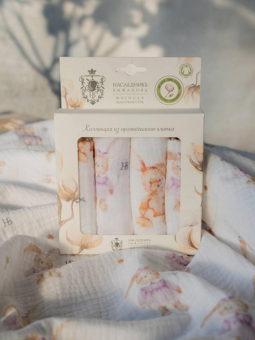 Платочки НаследникЪ Выжанова муслин 21х21 4 шт Н08030 ЧЗ зайка в платье