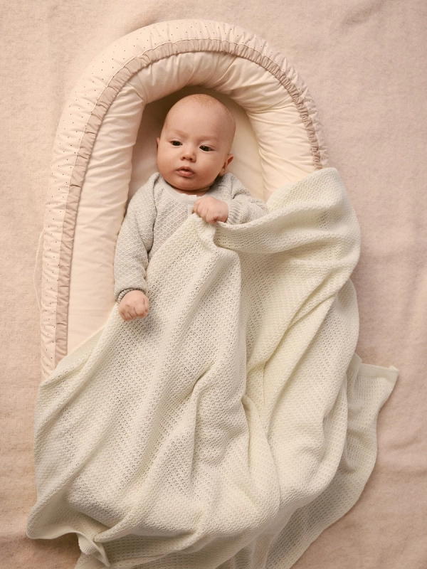 Воздушная паутинка вязаного пледа окутывает новорожденных крох чуткими прикосновениями с первых мгновений жизни.