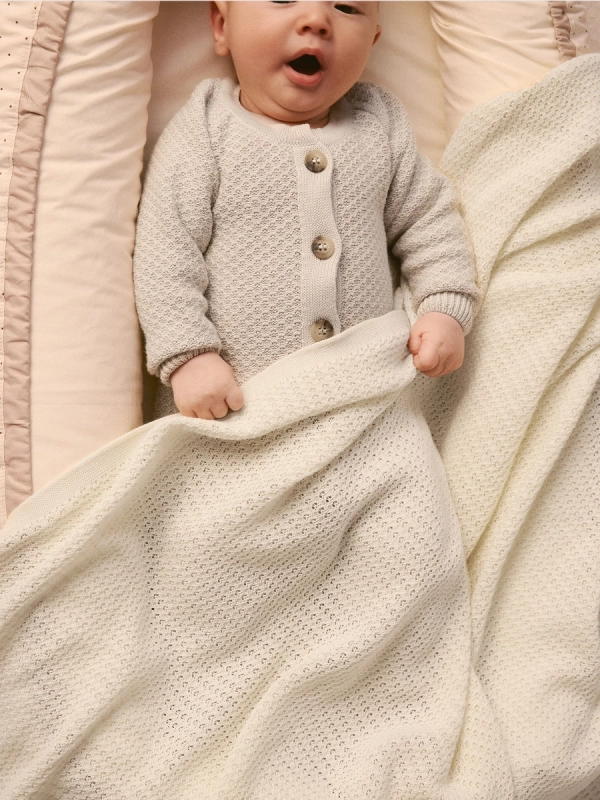 Воздушная паутинка вязаного пледа окутывает новорожденных крох чуткими прикосновениями с первых мгновений жизни.