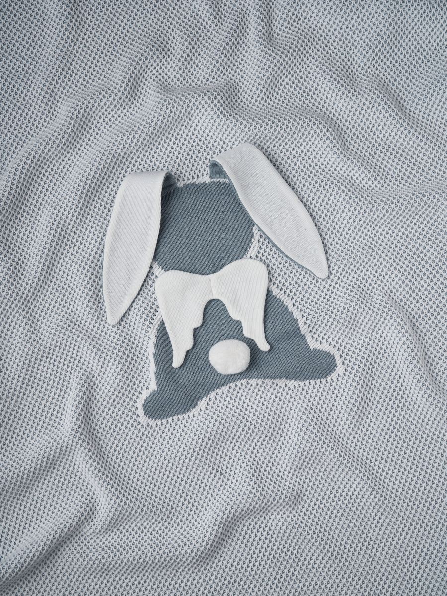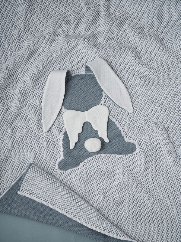 Плед двойной вязки Little Star Зайка Ангел Straz 90*90 0421 серый меланж/белый
