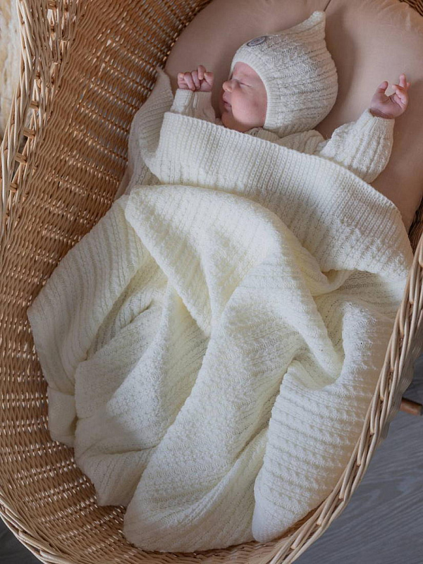 Мягкий вязаный плед для новорожденных — тепло, уют и стиль в каждом касании! Идеальный подарок для первоклассных моментов: подходит для выписки, прогулок и дома. Нежный и гипоаллергенный, он не только согреет вашего малыша, но и станет его любимым аксессуаром. Плюсы: Высокое содержание шерсти — мягкость и тепло, Гипоаллергенный и дышащий, Универсальный дизайн подходит любой девочке или мальчику. Размер 95х95 см — для прогулок и уютных вечеров. Подарите малышу ощущение заботы и тепла — этот плед станет его верным другом и отличным подарком!