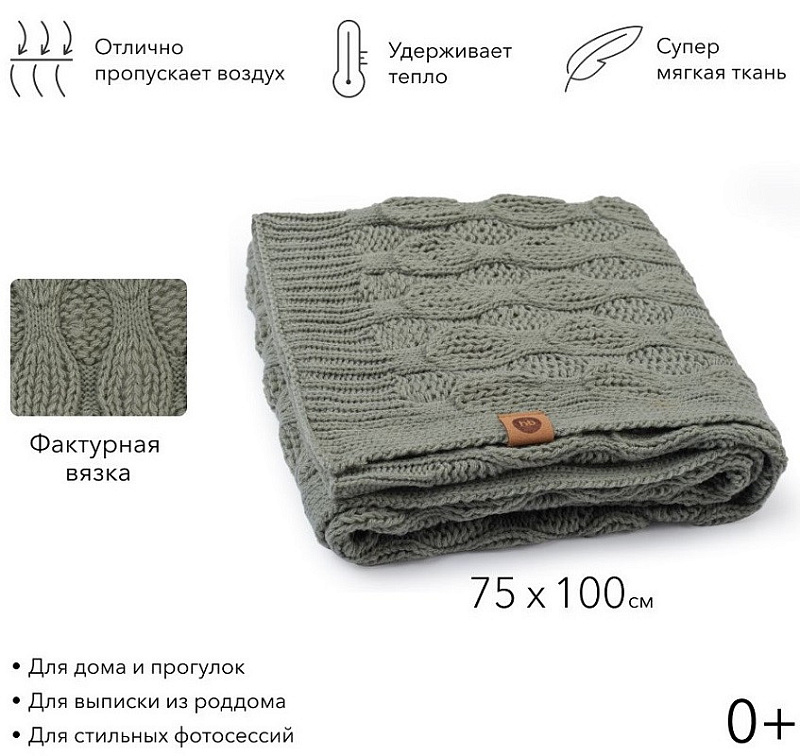 Мягкий вязанный плед согреет малыша дома или на прогулке. Лёгкий и тёплый плед подходит для детей с рождения и приятен нежной коже ребёнка. Простой классический дизайн идеален для стильных фотосессий и выписки малыша из роддома.