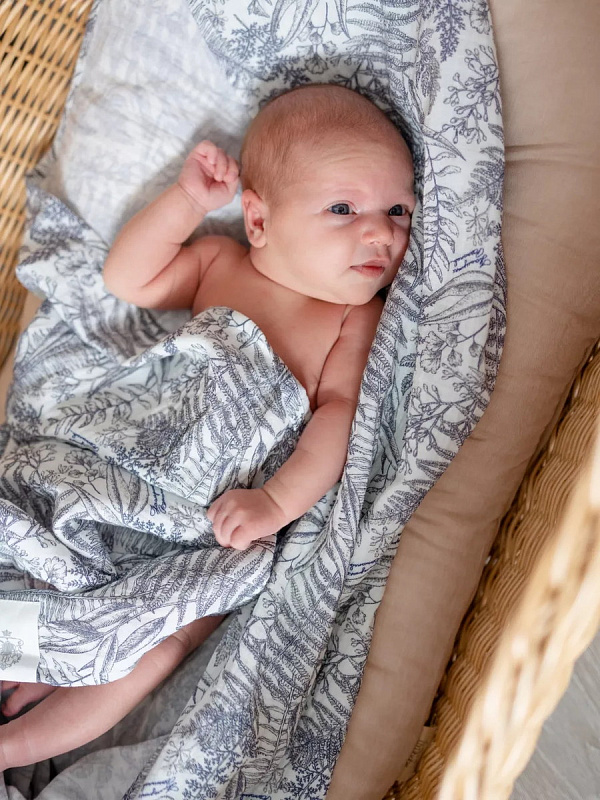 Плед-пеленка НаследникЪ Выжанова изготовлена из натуральной ткани. Ткань прошла специальную обработку, благодаря которой плед невероятно нежный, что позволяет использовать его с самого рождения.