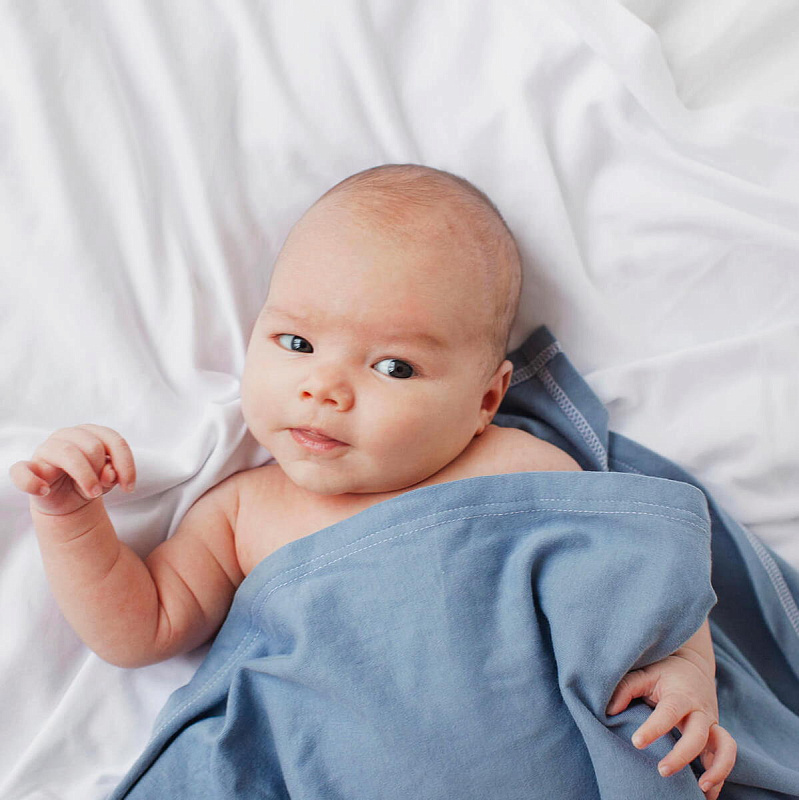 Плед-пелёнка Mjölk [мьёльк] Blue Shadow – идеальный лёгкий плед большого размера. Изделие выполнено из одного слоя плотного и мягкого сертифицированного трикотажа со 100% хлопком в составе. Материал эластичный и нежный, хорошо пропускает воздух и впитывает влагу. Такая пелёночка не вызывает аллергии и не создаёт твёрдых загибов при пеленании, дарит ребёнку комфорт и уют.