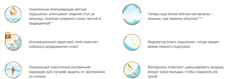 Подгузники имеют индикатор влаги, который подскажет когда придет время его сменить.