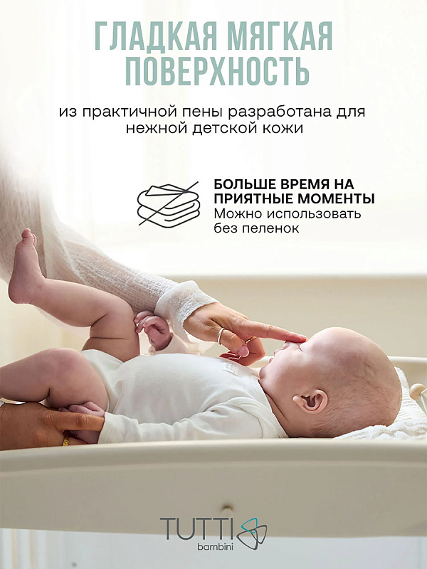 Пеленальная доска Tutti Bambini Cushi на жестком основании— настоящая палочка-выручалочка для современной мамы. Нежный, мягкий и гладкий материал не раздражает чувствительную детскую кожу, делая процедуры пеленания и смены подгузника простыми и невероятно комфортными. Очень легкая в уходе: если произошла неприятность, просто протрите влажной тканью или салфеткой. Не нужно отвлекаться, чтобы поменять чехол или постирать пеленку — проводите больше времени с малышом без хлопот и суеты!