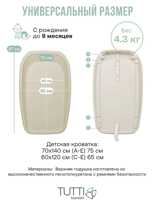 Подложка Tutti Bambini Cushi пеленальная на жестком основании CashmerНет оценокХарактеристики